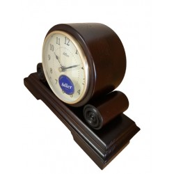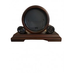 Klasyczny drewniany zegar kominkowy z mechanizmem zasilanym na baterie. Obudowa składająca się z okrągłej obudowy cyferblatu, podstawy oraz ozdobnych reliefów bocznych. Mechanizm zegara umieszczony jest w plastikowym pudełku z dostępem od tyłu zegara.